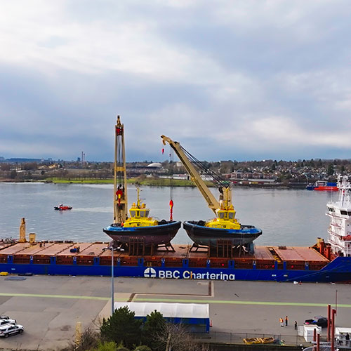 The first two electric tugboats in our fleet have been operating since 2024 at the Port of Vancouver, Canada. These vessels will significantly reduce greenhouse gas (GHG) emissions and underwater noise.
